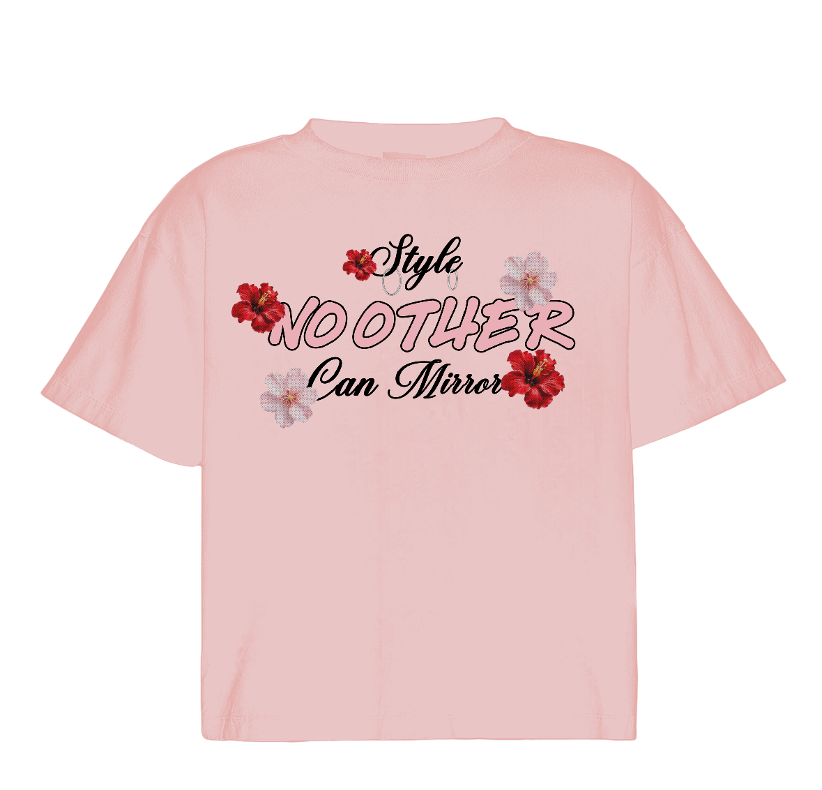 The “Style No Other Can Mirror” Tee is made for the women who move with unmatched presence. The design features bold text adorned with soft floral accents and a subtle touch of earrings hanging from the word Style—a small detail that speaks volumes. This tee represents a look that can’t be copied and a presence that can’t be mirrored. One-of-one energy, always.