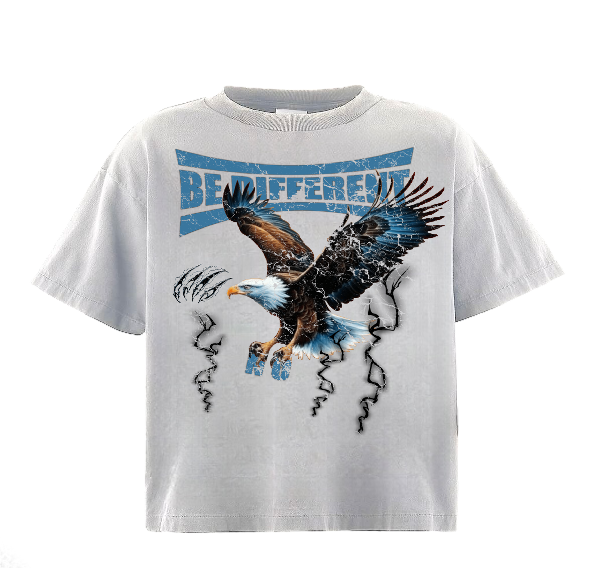 The “Be Different” Tee delivers a true-to-size fit with a graphic that speaks for itself. An eagle clutches the letters N and O—a nod to No Other—while streaks of lightning cut through the design, adding movement and edge. On the back, the phrase “Never take advice from someone who can’t take their own” pushes the message of staying original and thinking for yourself