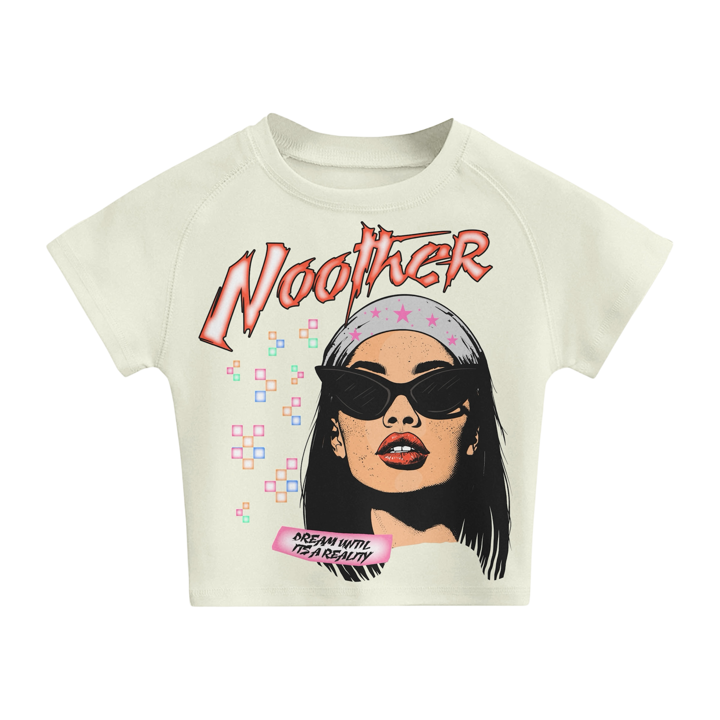 The Starstruck Crop Top blends bold style with inspiring vibes. Featuring a sleek female face with straight hair and a subtly open mouth, it captures a moment of raw emotion. A small boxed statement below reads “Dream until it’s a reality,” driving the message home. Vibrant color accents along the sides add energy and depth.