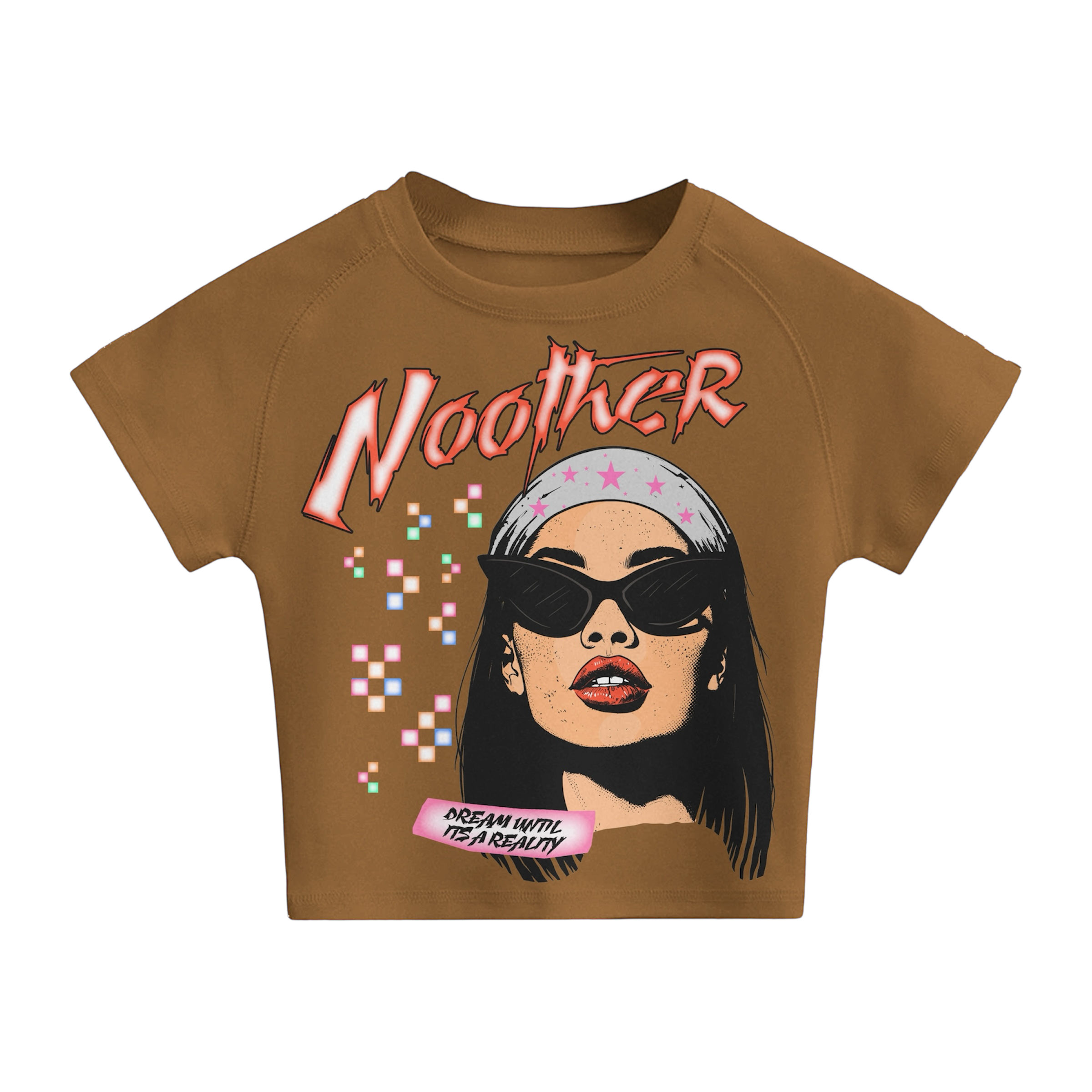 The Starstruck Crop Top blends bold style with inspiring vibes. Featuring a sleek female face with straight hair and a subtly open mouth, it captures a moment of raw emotion. A small boxed statement below reads “Dream until it’s a reality,” driving the message home. Vibrant color accents along the sides add energy and depth.